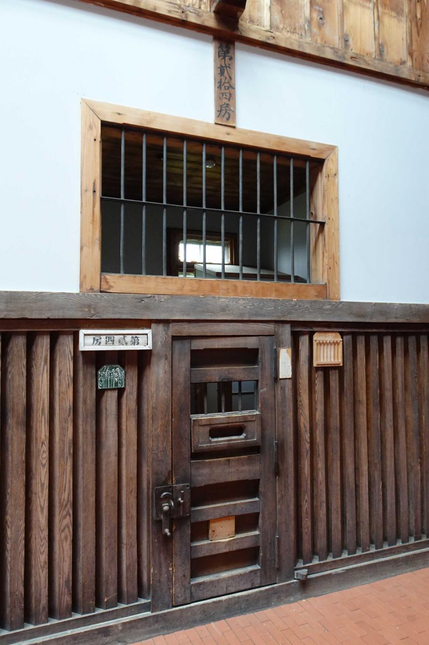 この建物は木造平家建、中央見張所を中心に側面から後方に放射状に建つ五つの舎房からなり、間を渡り廊下で接続しているため五翼放射状房と呼ばれている。舎房外壁は下見板張で、屋根は桟瓦葺だったが、現在は鉄板葺となっているそうです。