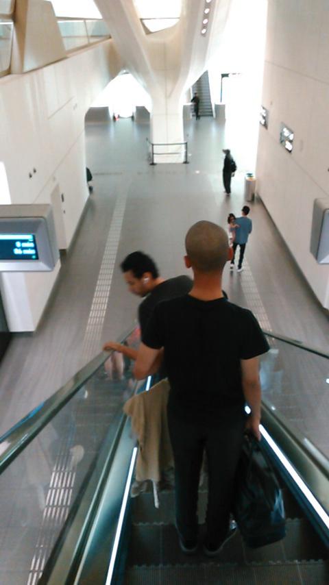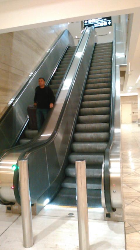 この時、右手側へ行って、エスカレーターで上がっていくと出発階へ行けます。
