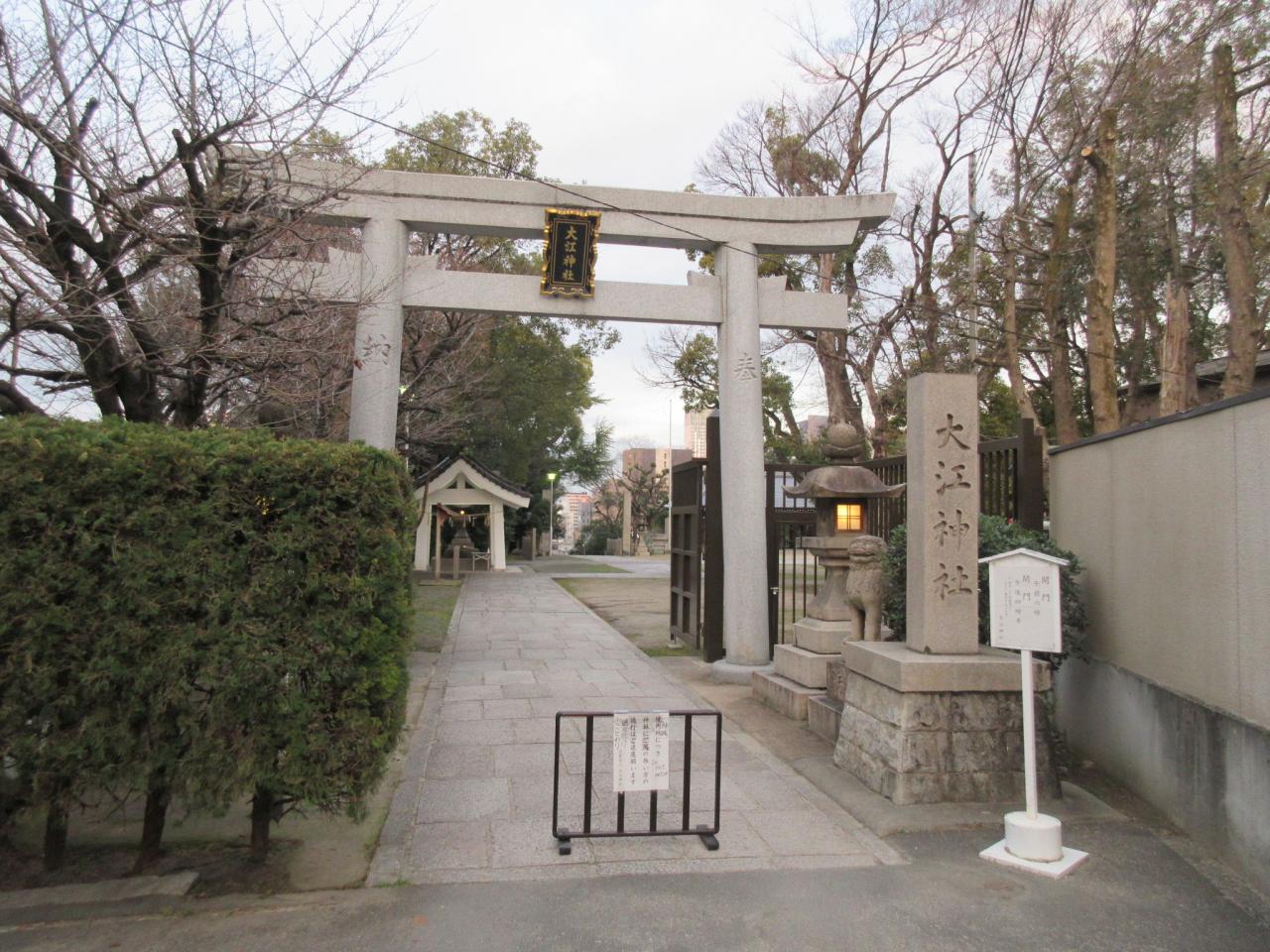 大江神社の立派な石の鳥居をくぐります。