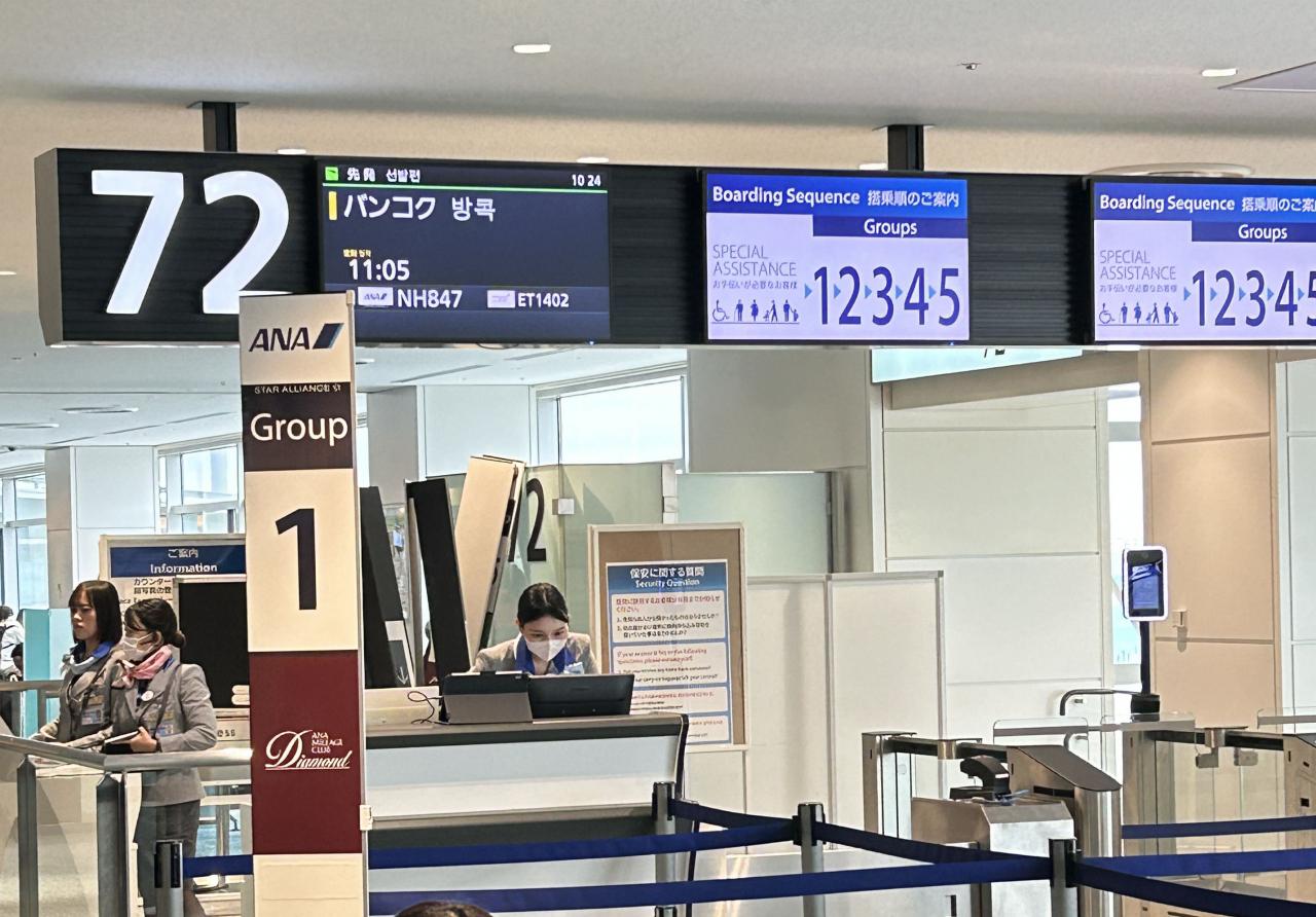 11:05羽田発のANA便でバンコックへ向かいました。ハイシーズンに入ったタイのせいか、満席でした。 -
