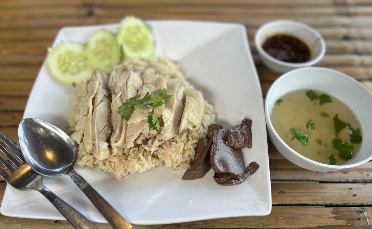ここのカオマンガイは美味しいです、いつも大盛り(ピセー)を注文します。 -