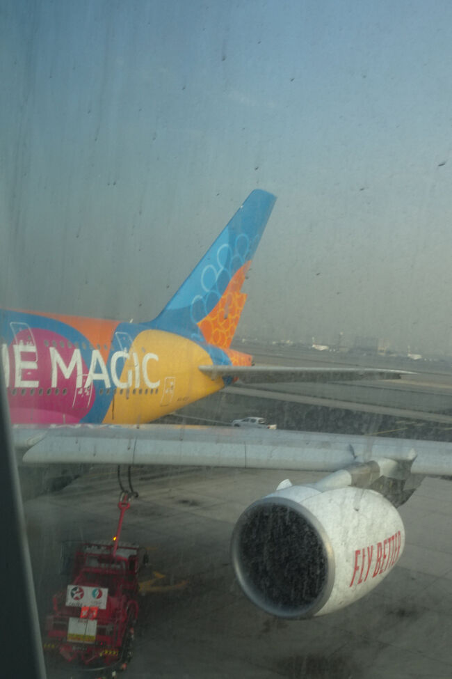 搭乗のA380は2階建てのため、少し離れた搭乗口へ電車で移動