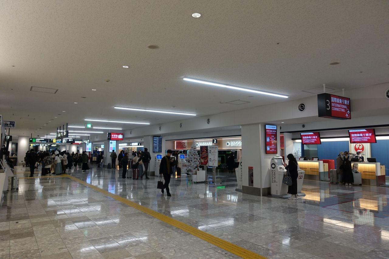 身軽な一人旅。預ける荷物もないので、2階の保安検査場に直行しました。細長いターミナルビルの真ん中付近まで列が伸びていましたが、進みは早いです。