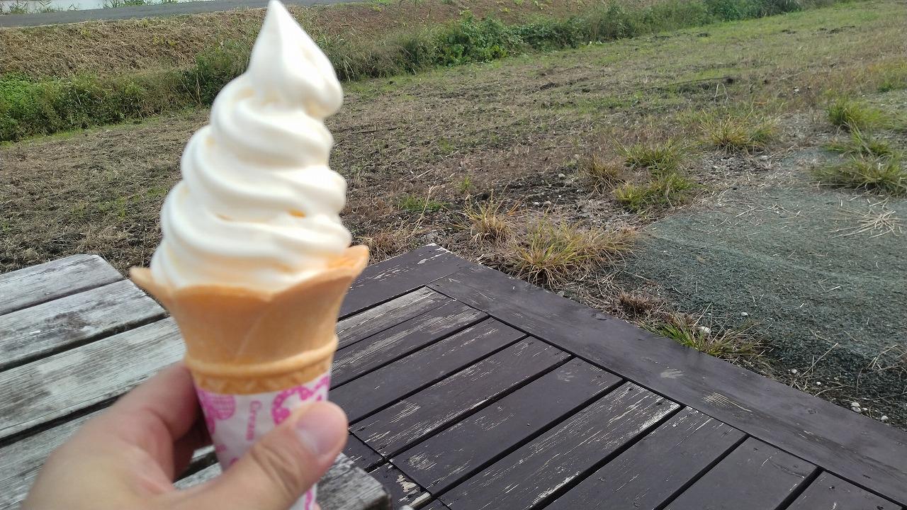 朝食は、自宅で食べてきたので、散歩の後のアイス。