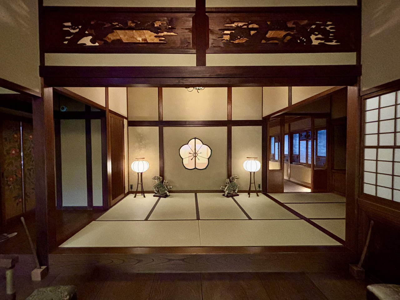 玄関の設え,欄間の彫刻にも品格が感じられます。