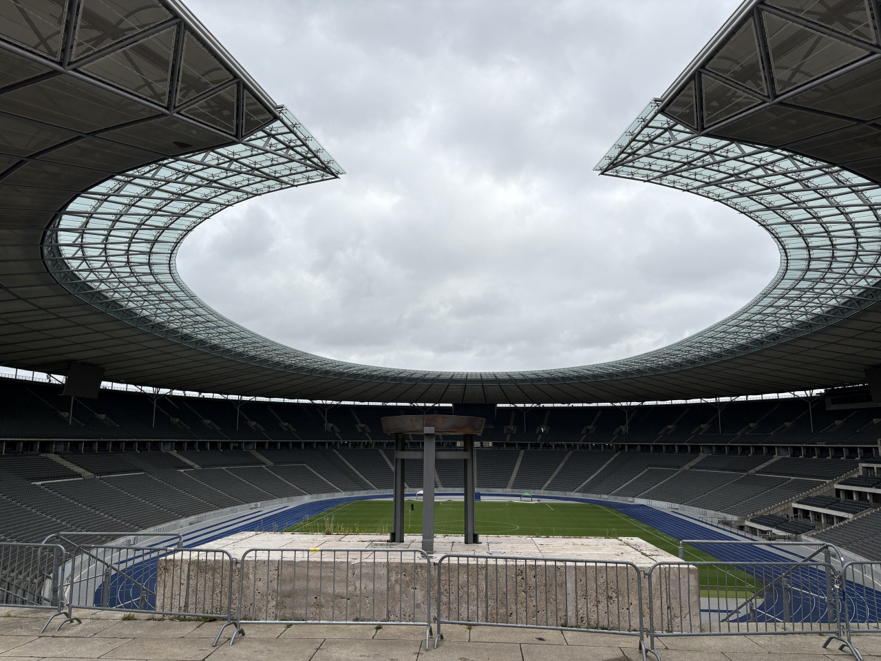 聖火台があった位置から外を見たところです。ナチスの負の歴史も刻まれたスタジアムです。この先にベルリンフィルが夏に屋外で演奏会をするヴァルトビューネ野外音楽堂もあったようです。