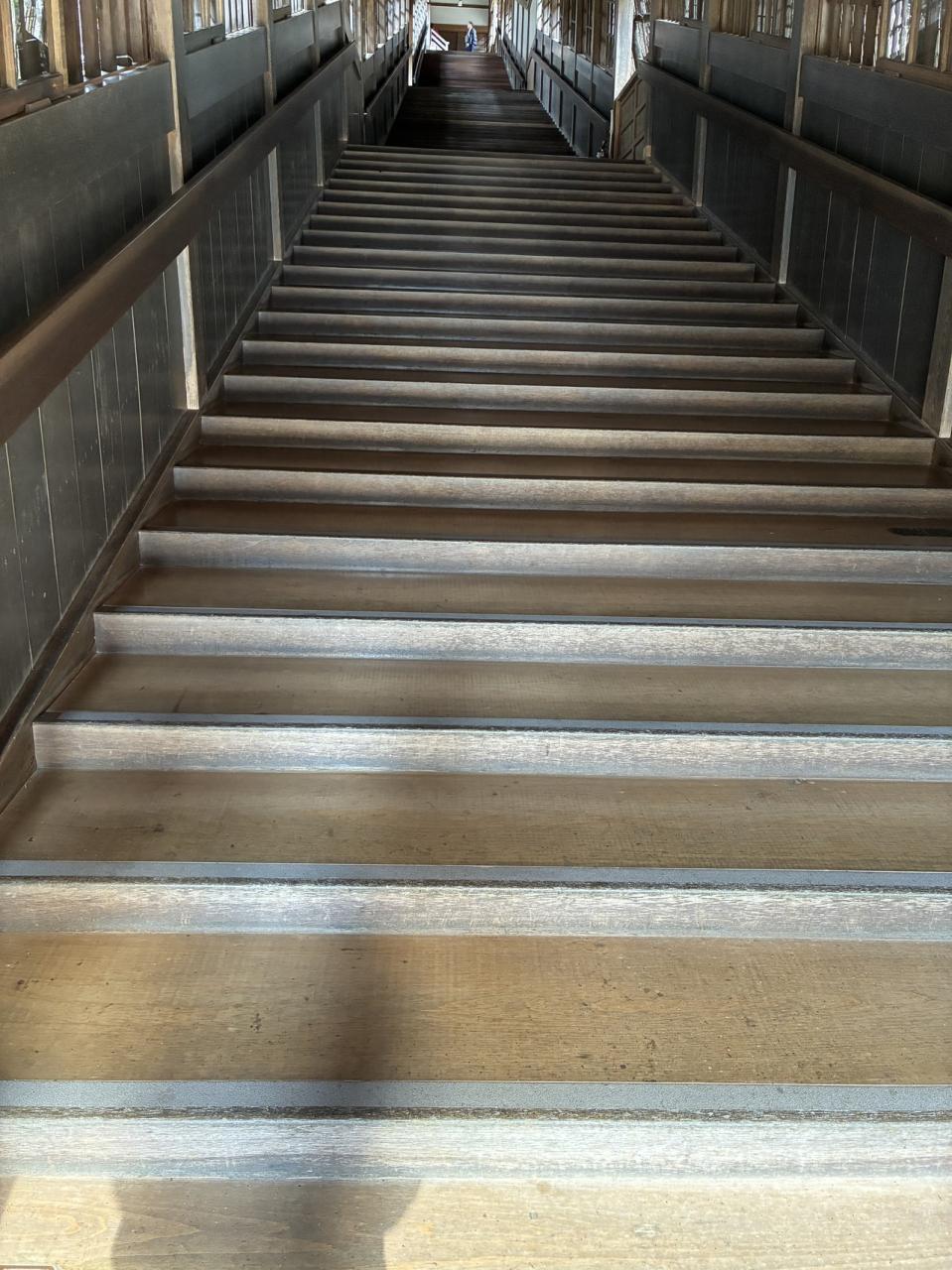 長い階段を登り見学
