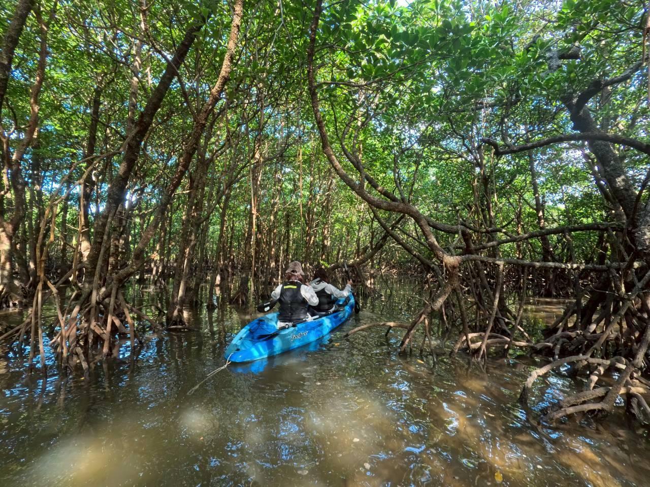 ちょうど満潮でマングローブの森の奥の方まで探検隊
