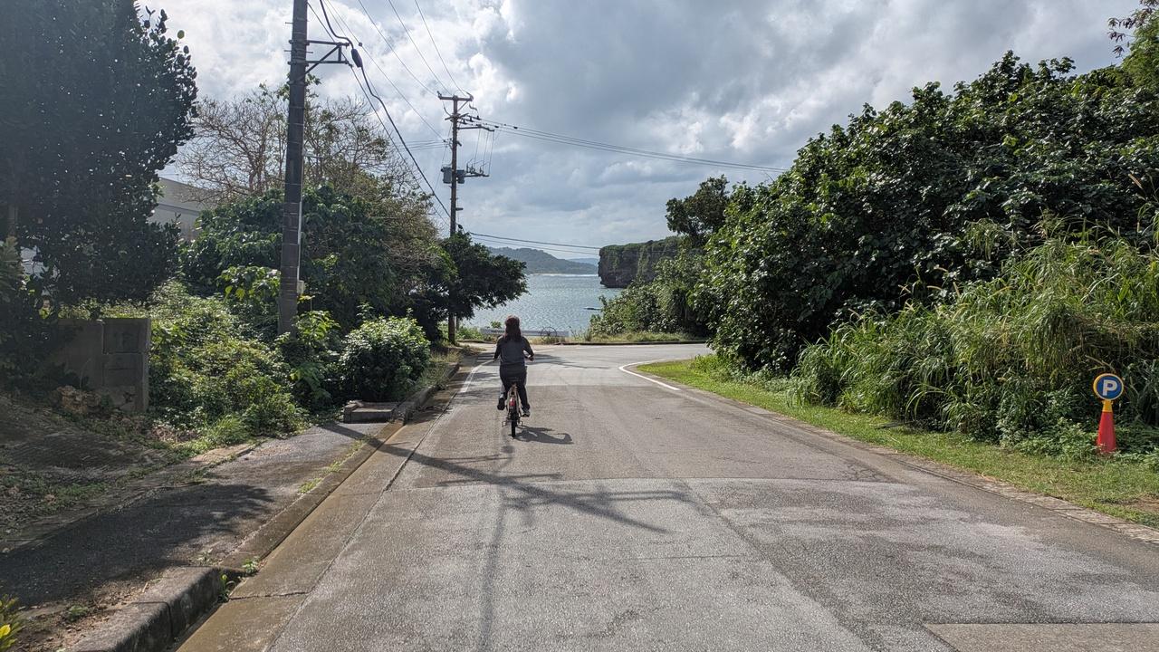 フェリー乗り場への送迎バスの時間まで1時間半くらいあるので、自転車を借りてサイクリングへ、