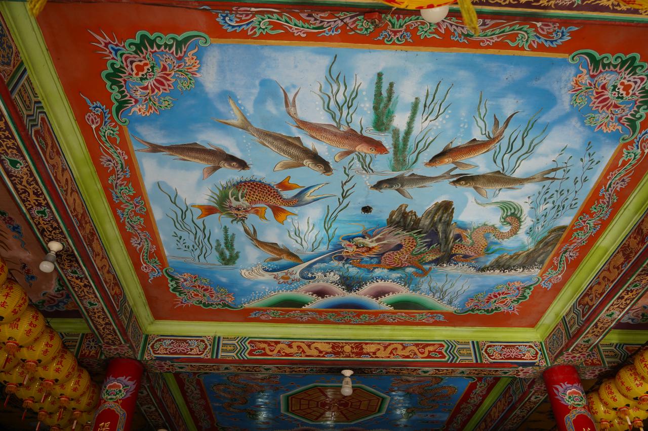 天井には鯉と龍。