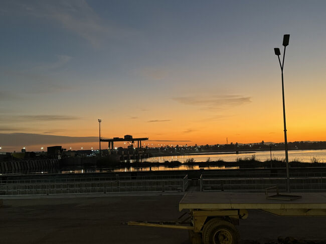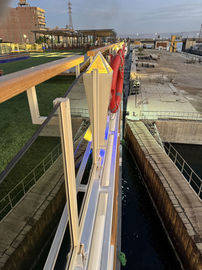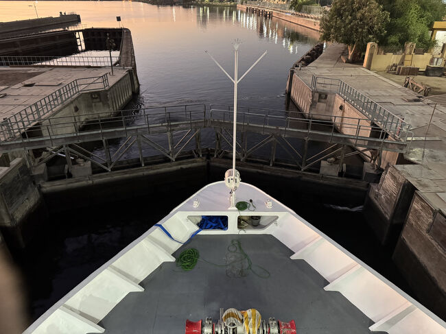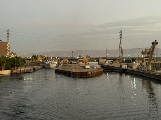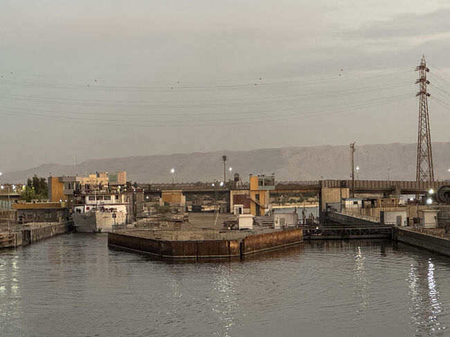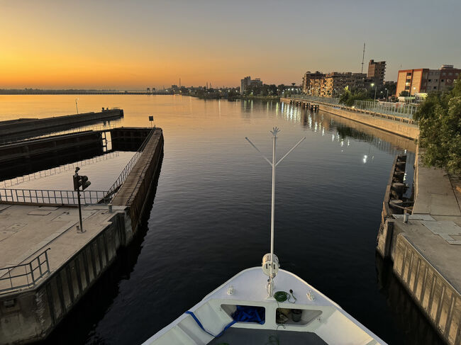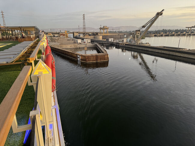 途中、エスナ水門を通過。通過時間 朝5時過ぎだったのでモーニングコールをしてもらった。出発が予定の16時30分だったら 通過が深夜だったらしくあきらめたが 欧州のツアー客が遅れて乗船したので出発が大幅に遅れた分朝方見られたので良しとする。