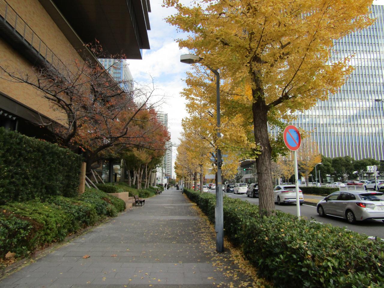 今来た通りを左折するとイチョウの並木があります。少し歩くと・・
