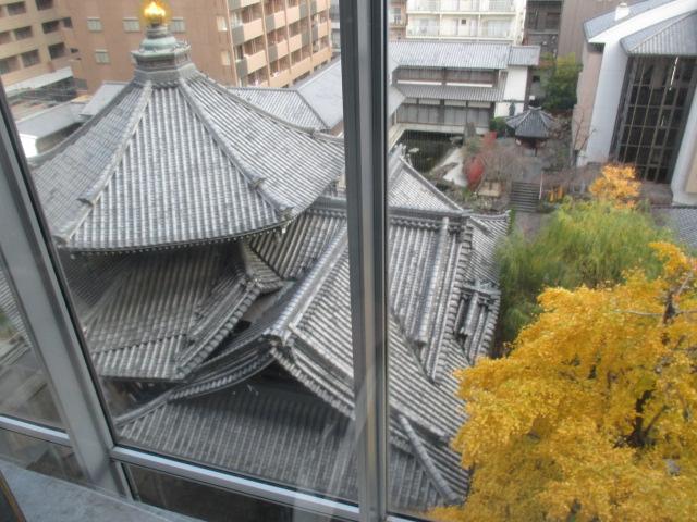 隣のビルのエレベーターから六角屋根が見えます。