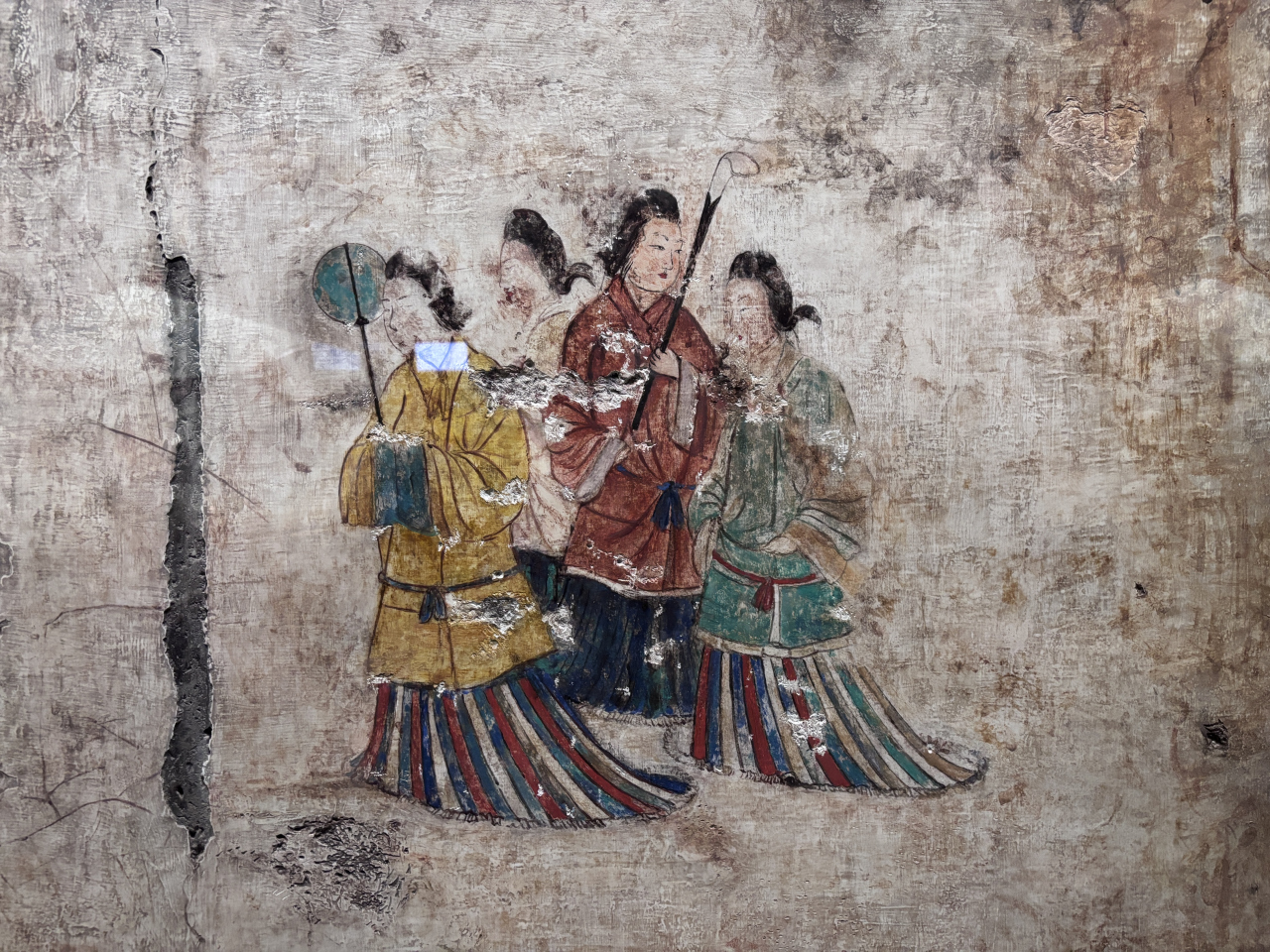 本物と同じ石材に、女子群像の絵を模写したものです。歴史の教科書などにも掲載される、有名な壁画ですね。 -