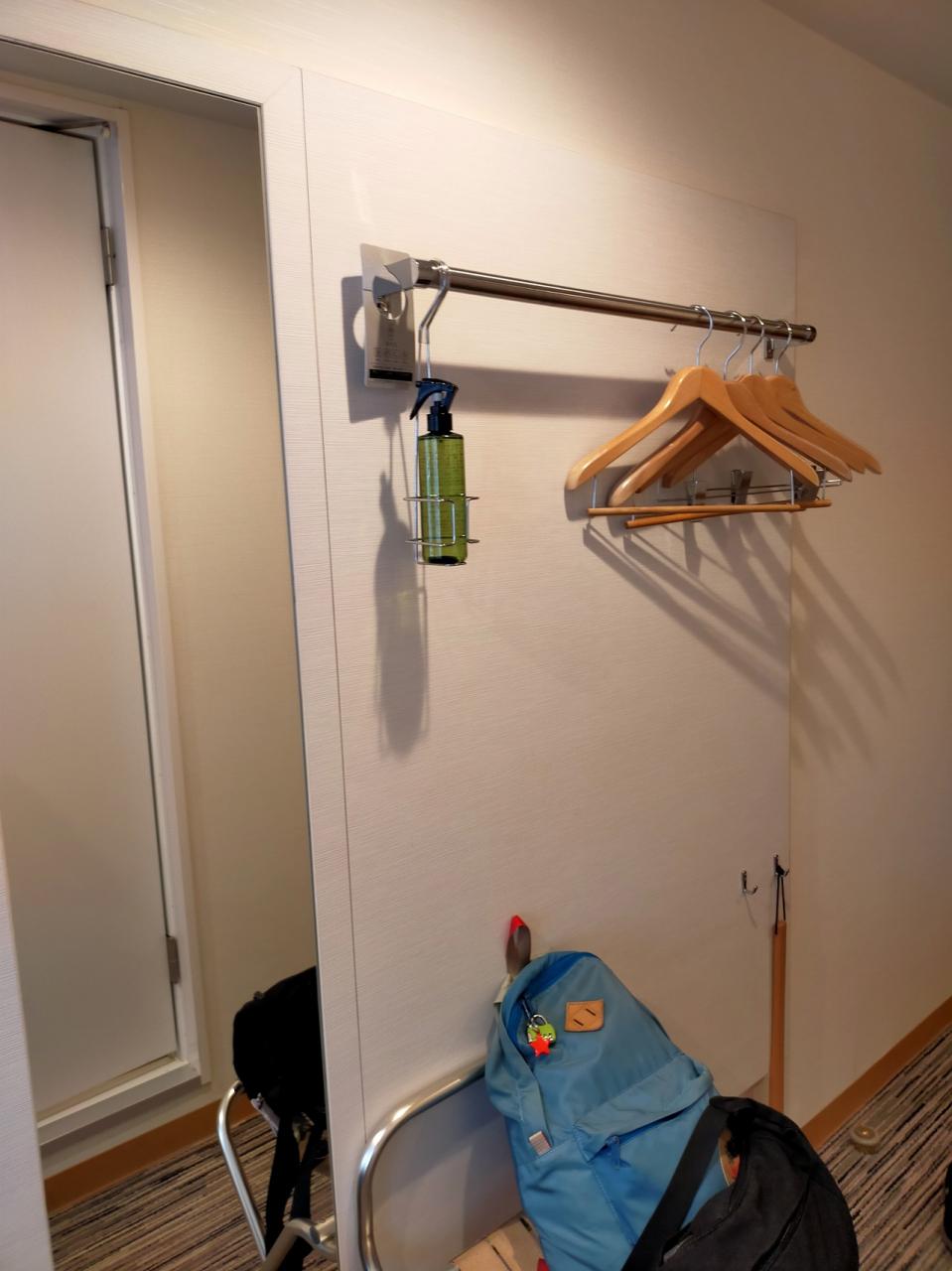 ハンガーは4つ 折りたたみ式 スーツケース置き場があります