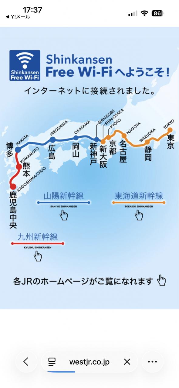 帰りも新幹線に乗って、やっとWi-Fiが繋がりました。