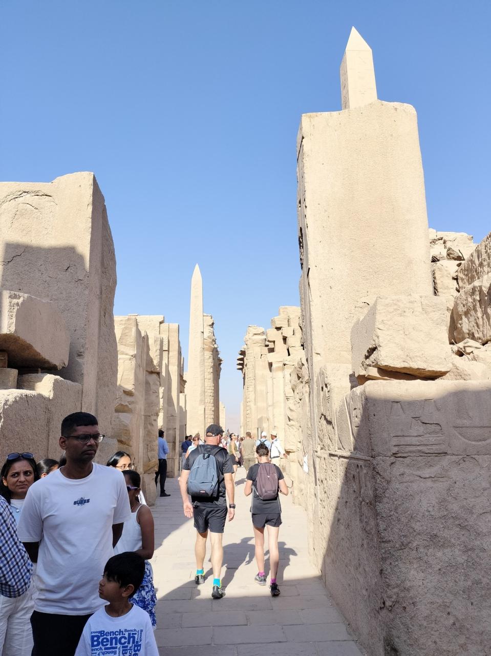 次に、ルクソール神殿に来ました。ここにはオベリスクが一本だけ立っていますが、もともと二本あったうちの右側は、フランスに贈られて、今はパリのコンコルド広場に立っています。