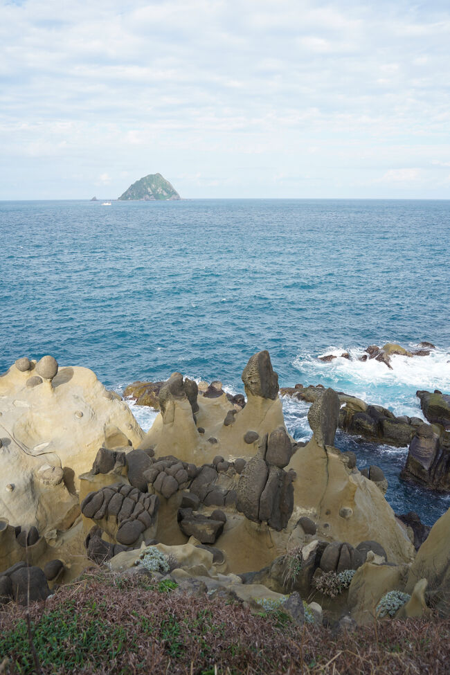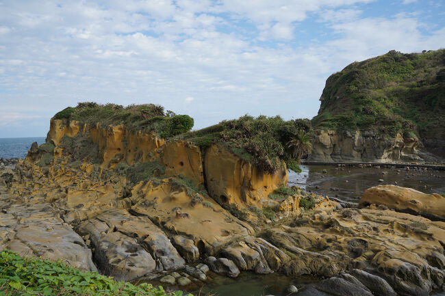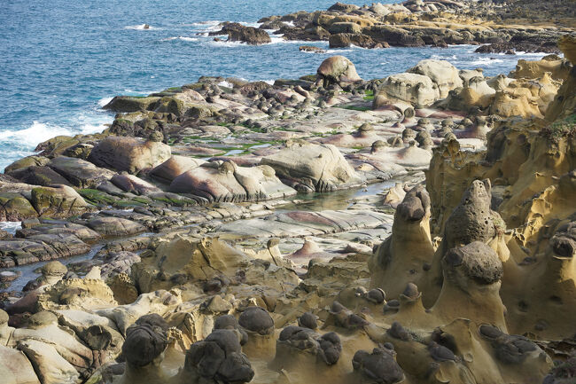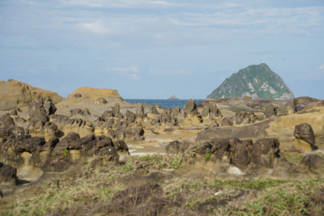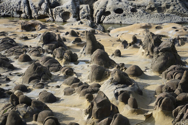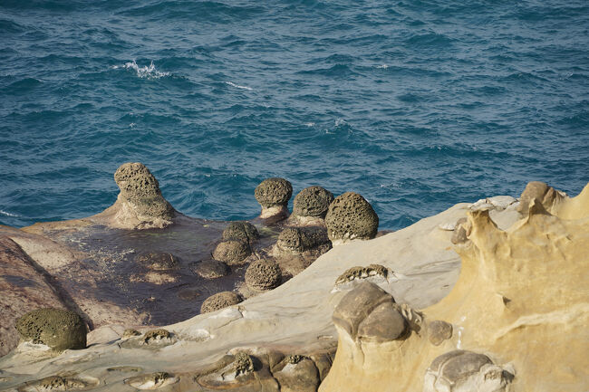 台東、小野柳もこんなとこありましたね…って、野柳近いんやん。なるほど、そんな感じの岩が。