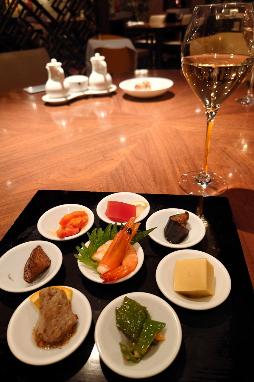 八種類の前菜。素材は和風だったりしても、どこかに中華のニュアンスがある味付け。どれもとてもやさしい味で、まさに京中華という感じ。シャンパンにもよくあいます。