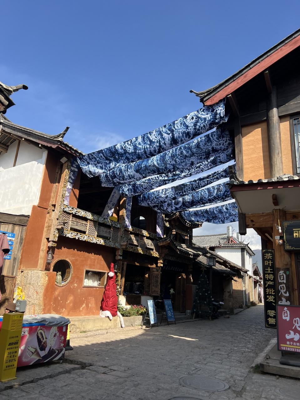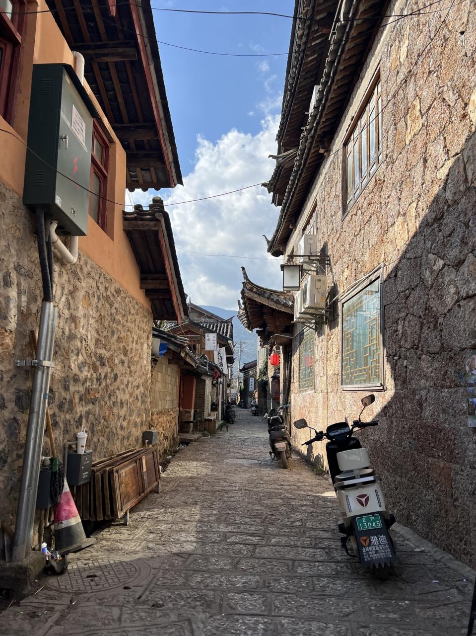 表通りは雲南コーヒー、レストラン、スナック、白沙の伝統の染め物、翡翠?玉?などのお店でとても賑わっていますが、1本裏道に入るとガラリと雰囲気が変わり、落ち着いた街並みを見ることができます。