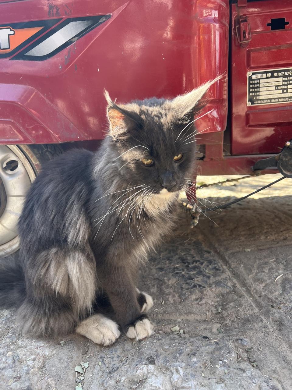 豪華な長毛種の看板ネコちゃん。近くのお店の子でした。とても人懐こくて、足元にすりすりしてきました。