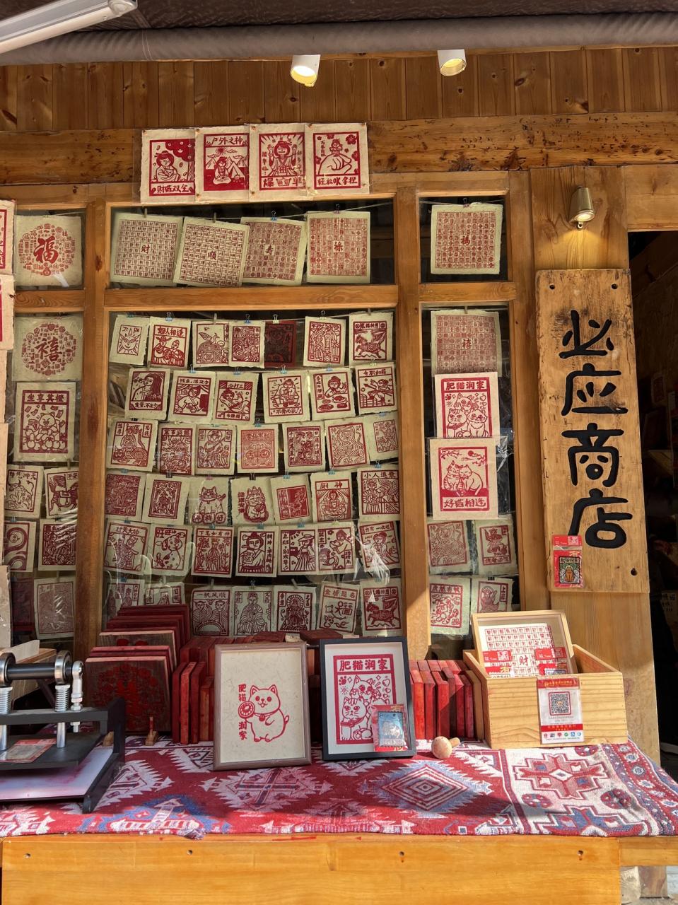 守り神の猫ちゃんモチーフのお札?このようなお札を店先に貼っているお店が多かったです。