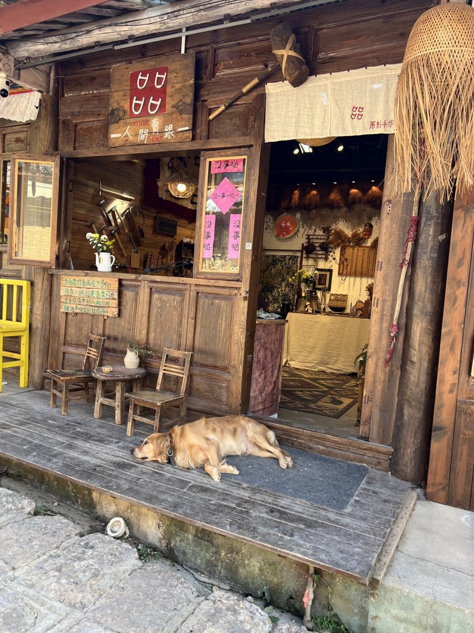 喫茶店の看板ワンコとご主人。雲南コーヒーの味見をさせていただきましたが、めちゃくちゃおいしかったです!