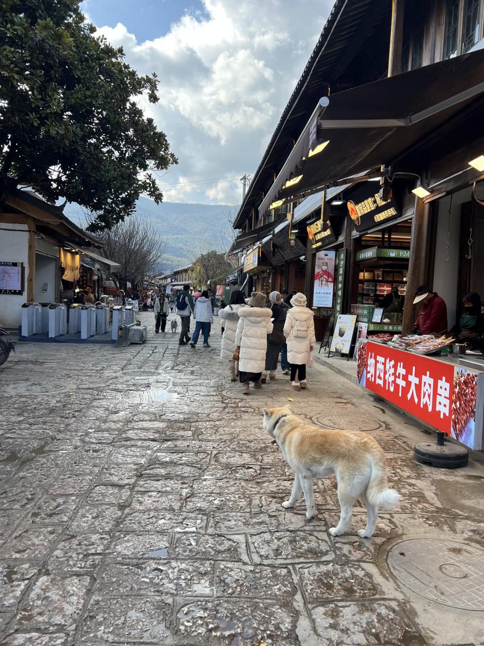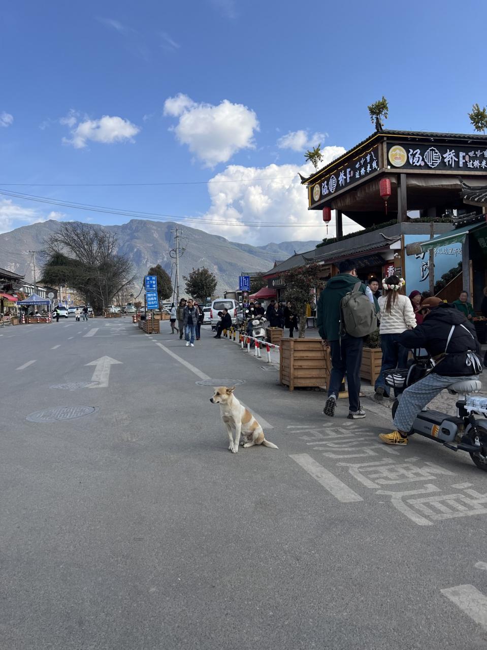 白沙古鎮から出た所の一番大きな通りです。ここにもワンちゃんが。