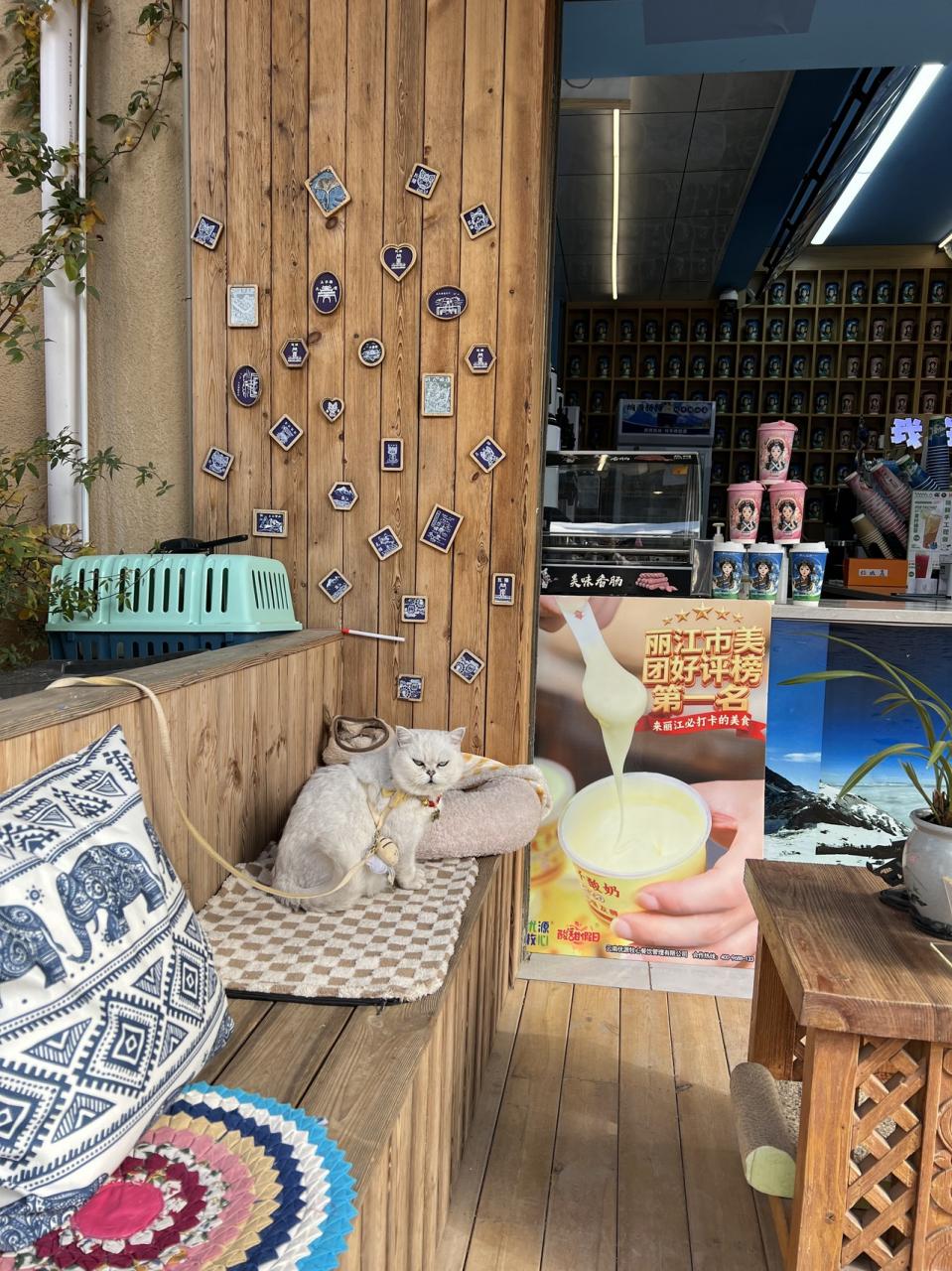 ヤギのミルクの飲み物屋さんの看板ネコちゃん。