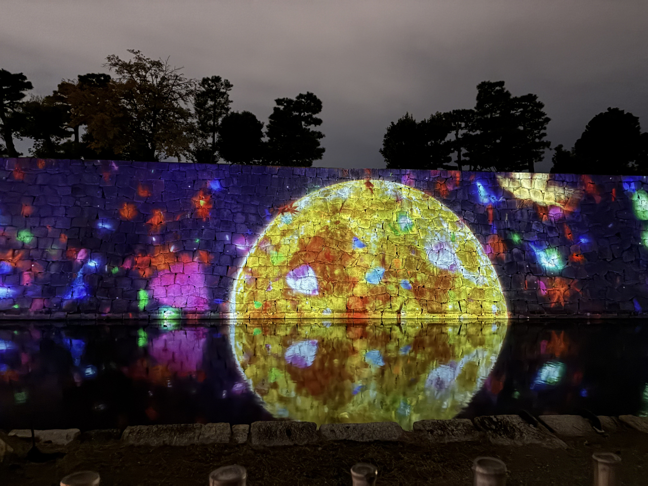 広大なお堀と、その水面に映像が反射して、とてもきれいな映像を堪能できました。