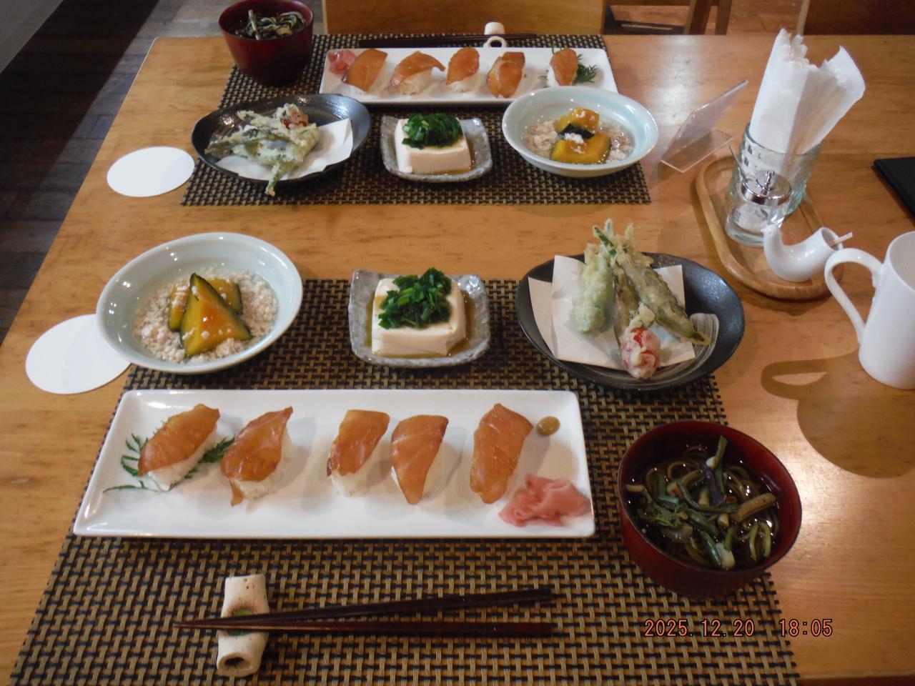 アクアさんの夕食は島寿司と天ぷらです。ついに我々だけの夕食になりました。