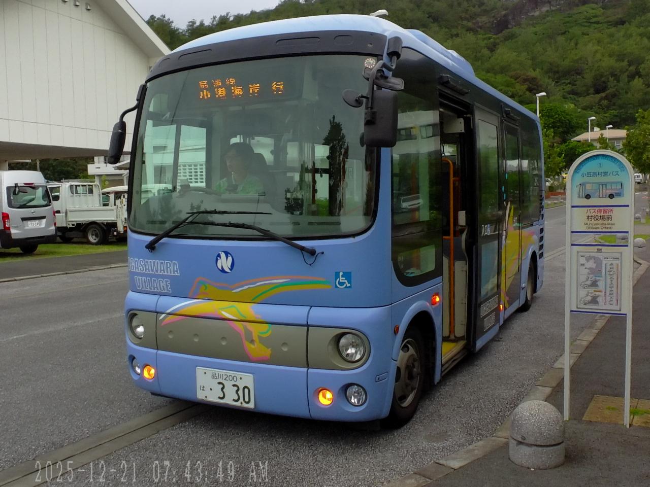宿近くの村役場から村営バスは出発します。南鳥島核ごみ文献調査の受け入れを小笠原村は認めました。日本のエネルギー政策の矛盾を小笠原村受け入れてくれるか注目されています。
