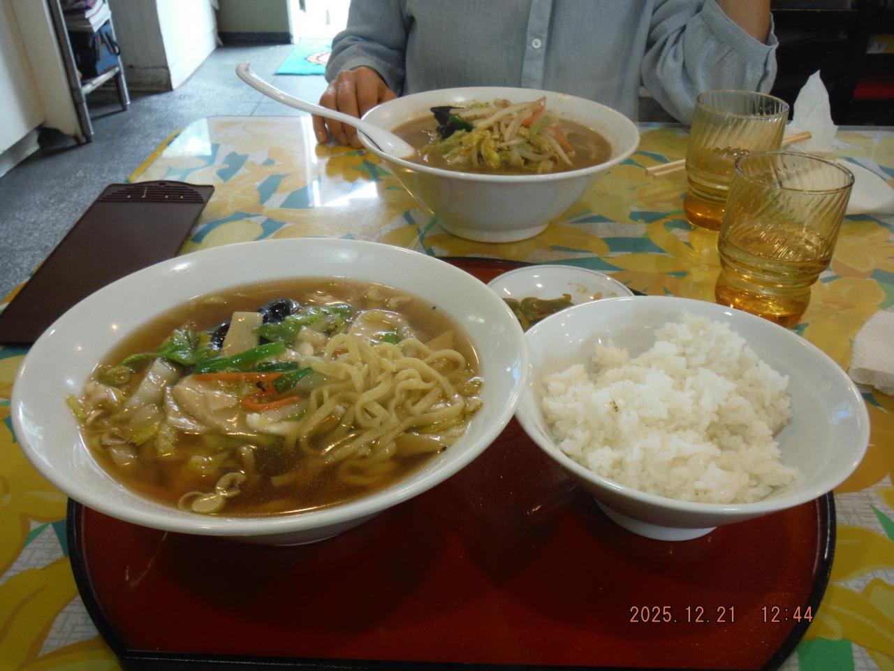 おがさわら丸の簡単な食事の前に昼食をしっかりいただきます。大村地区の海岸通り沿いにある中華レストラン海遊さんで海鮮ラーメンをいただきました。