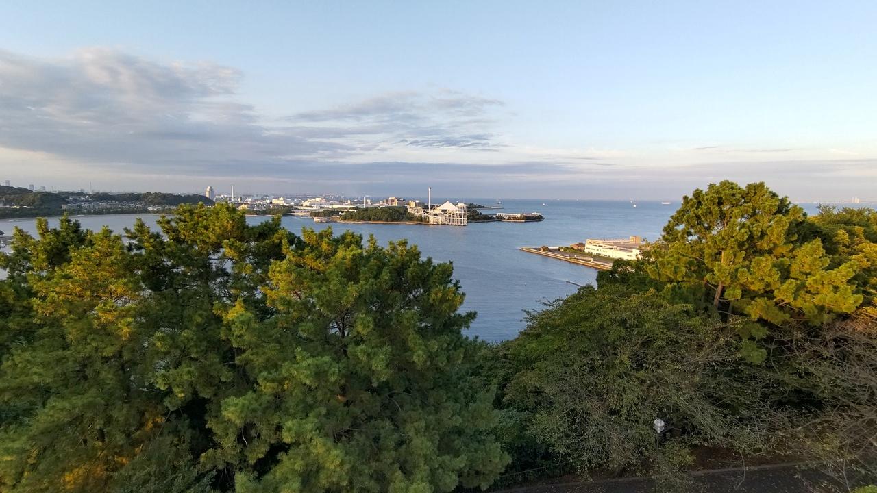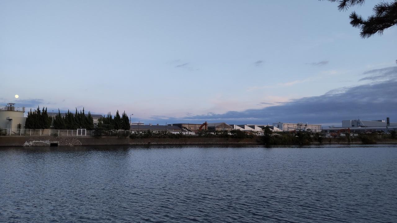 左手の満月下の排水処理施設や背景の鋸波屋根の建物等は、周防灘に面した福岡県京都郡苅田町の関連会社日産自動車九州株式会社への車両組立事業の移転を発表している日産追浜工場だ。野島公園 公園・植物園