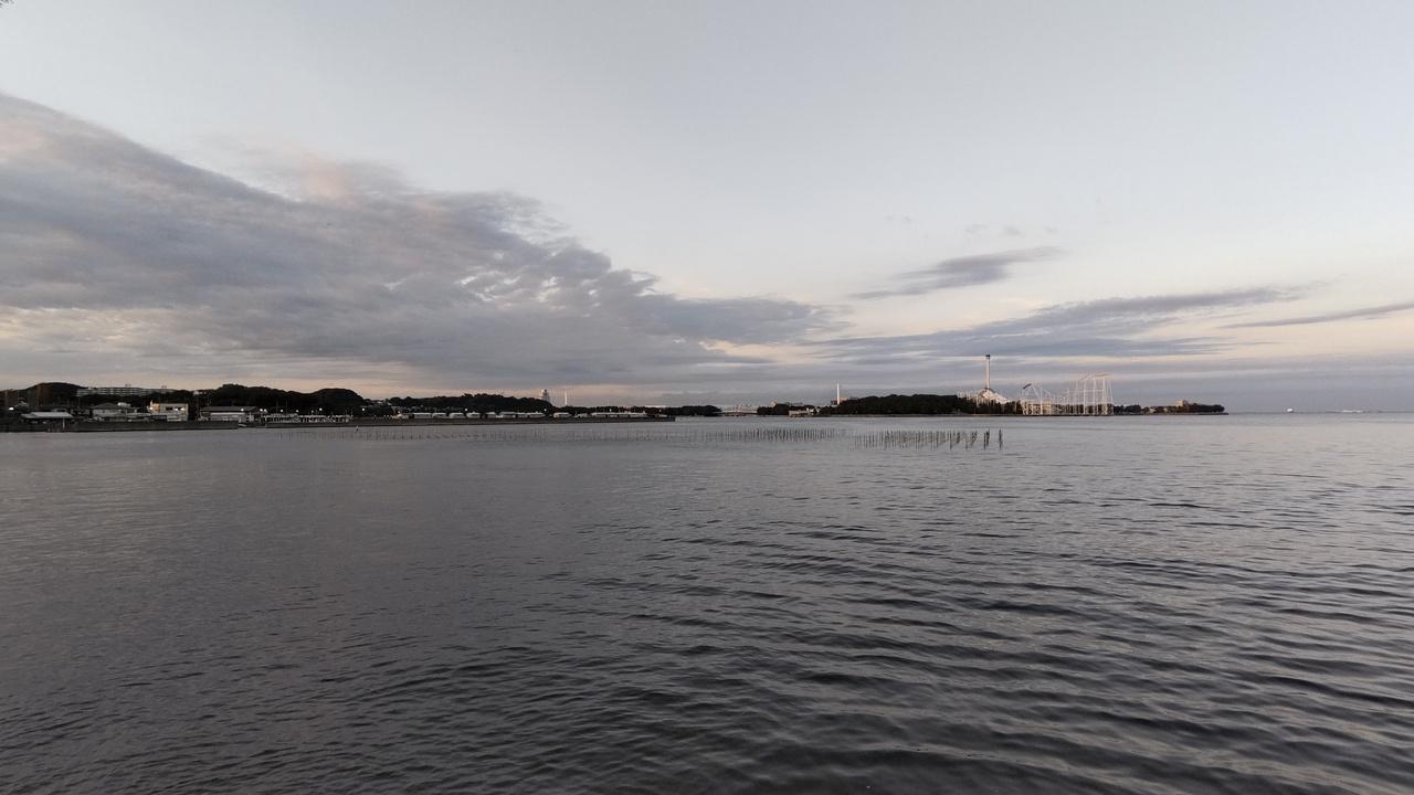 こちらは野島公園内ではなく、金沢シーサイドラインと京急の金沢八景駅前まで続く、平潟湾プロムナードから眺めた曇天下の野島。