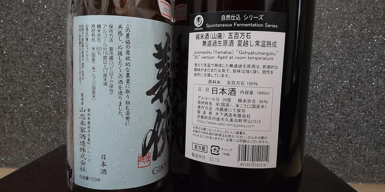 右手はご存じ京都府京丹後市久美浜の木下酒造「玉川」五百万石純米酒 山廃無濾過生原酒夏越し常温熟成