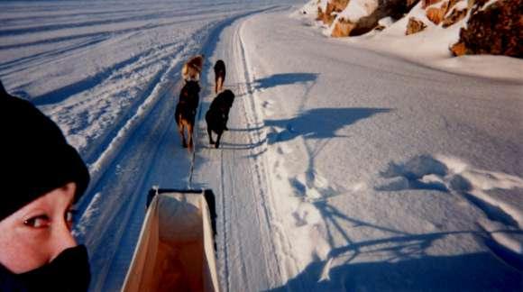 犬たちは自身の吐く息が顔にかかって凍結しながらもそりを引いてくれました。ありがとうございました。
