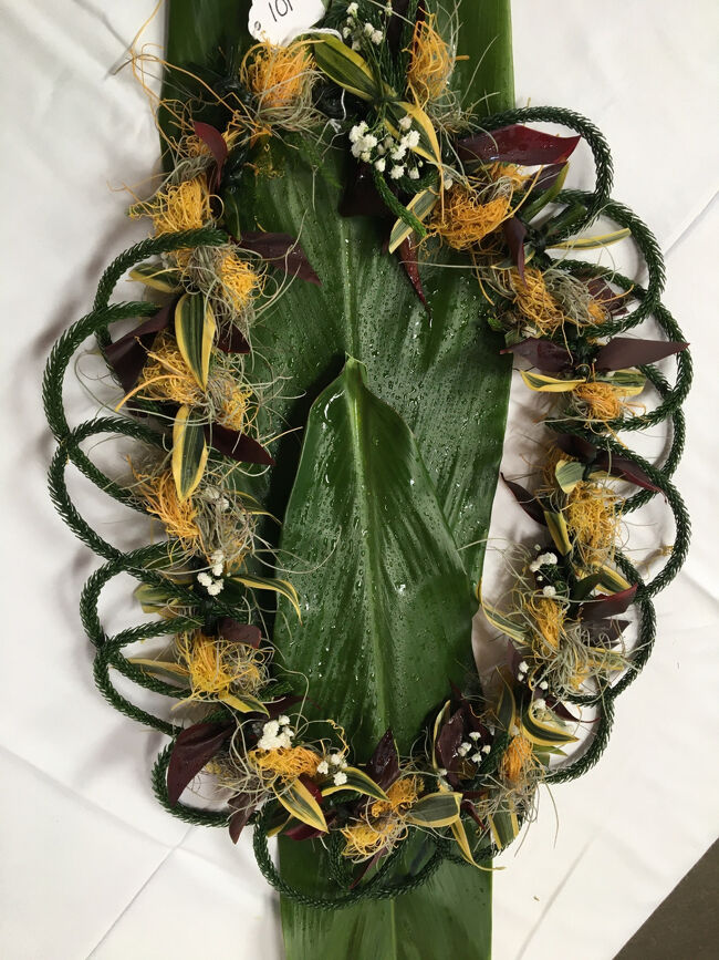 コナコーヒーの試飲コーナー、ティーリーフの作品作りコーナー、ハンドメイド作品の販売ブース、レイの人気投票、などなど。