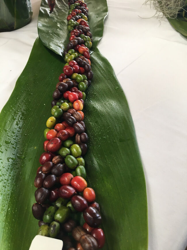 コーヒー・チェリーの色の違いを利用して、美しいレイになっています