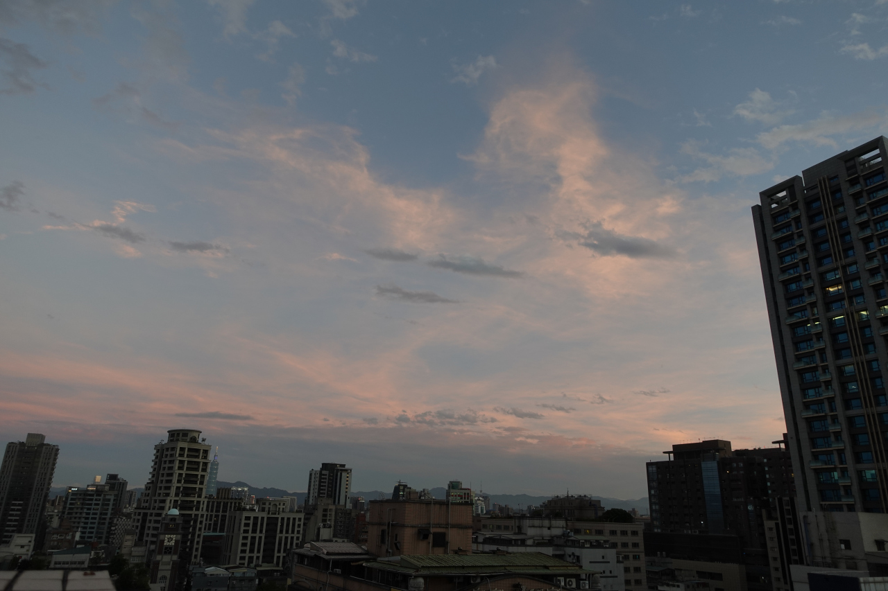 17:00くらい、東の空がえぇ感じ。屋上あがって、一服しながら眺めを。