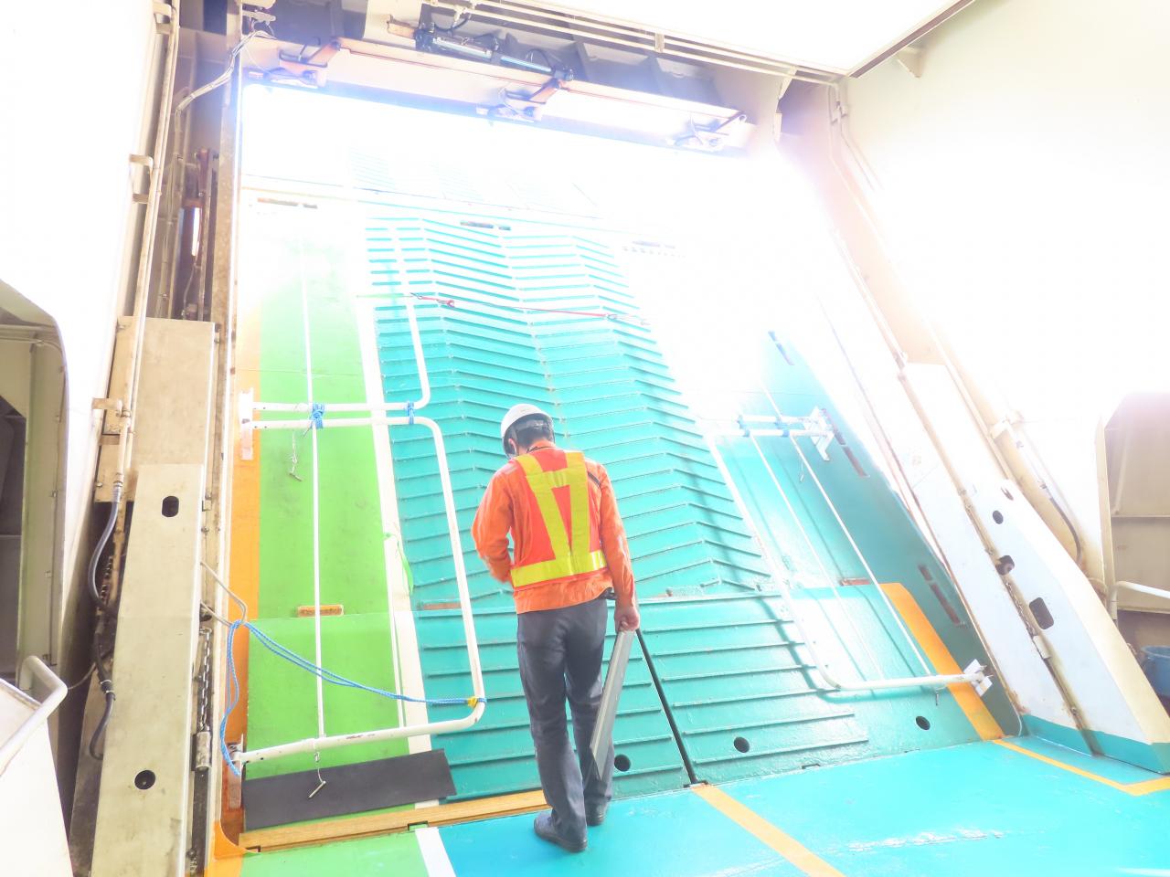 清水を出たフェリーが来ました。すべての下船を待って、