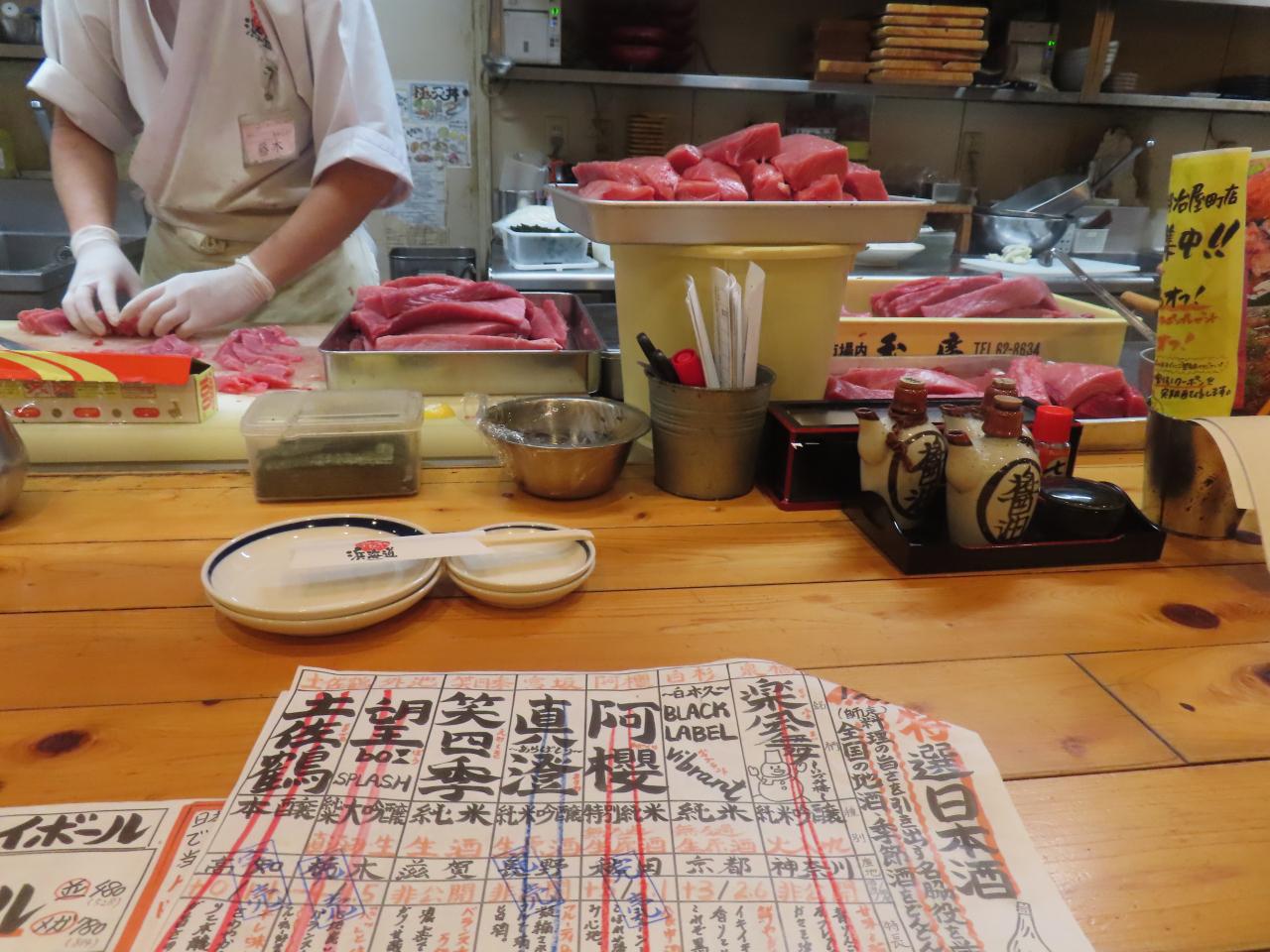 大量のマグロの刺身が目の前で作られてゆきます。