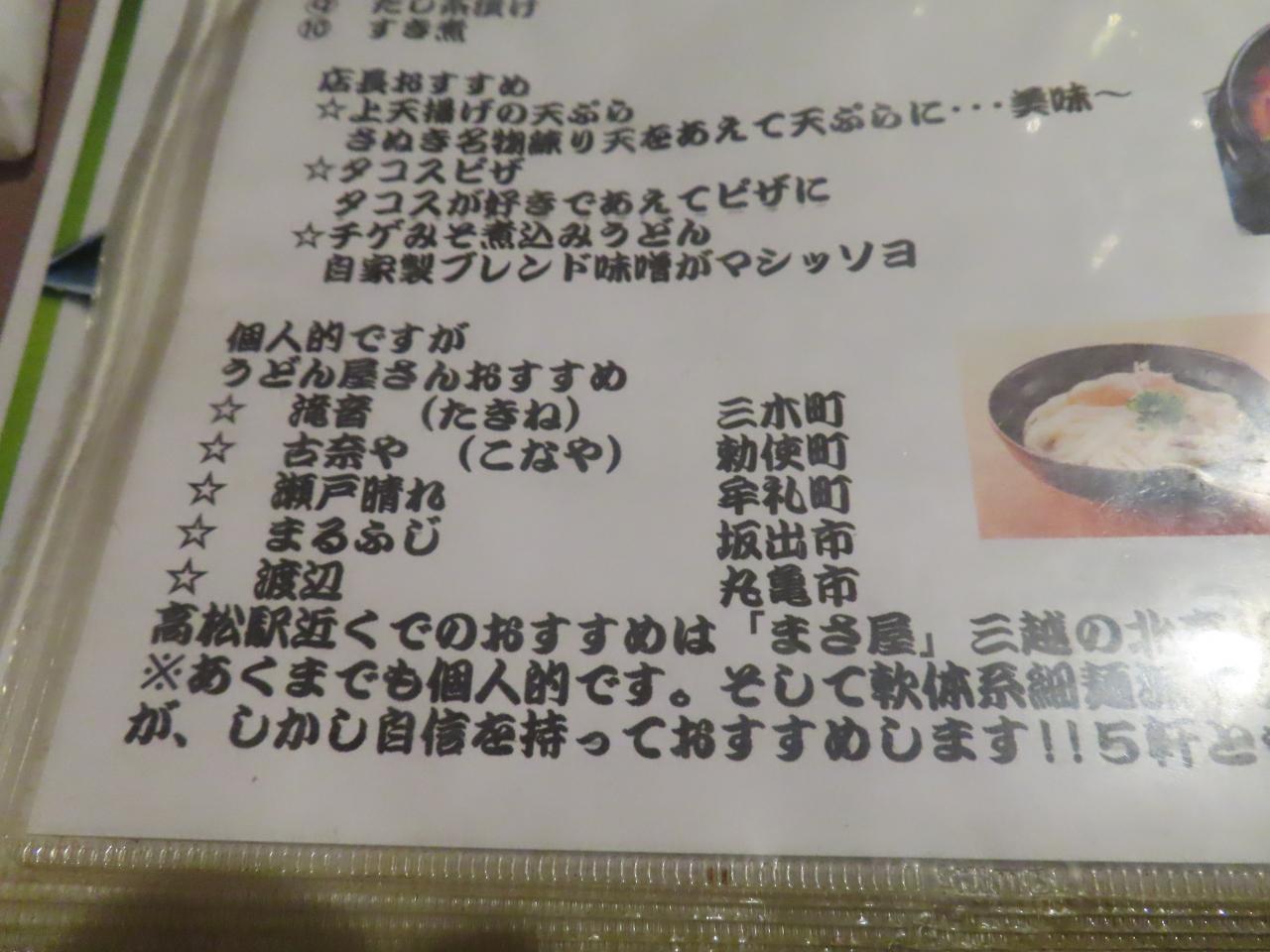 メニューに、店長お勧めのうどん屋さんが書いてありました。次回尋ねてみたいと思います。