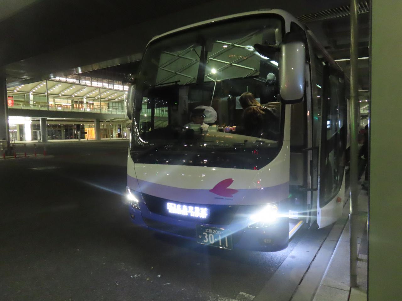 翌朝は早朝のリムジンバスで広島空港に向かいます。荷物が多いとバスがラクチンです。