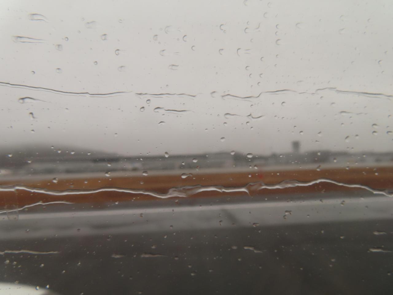 滑走を始めると雨が真横に流れていきます。
