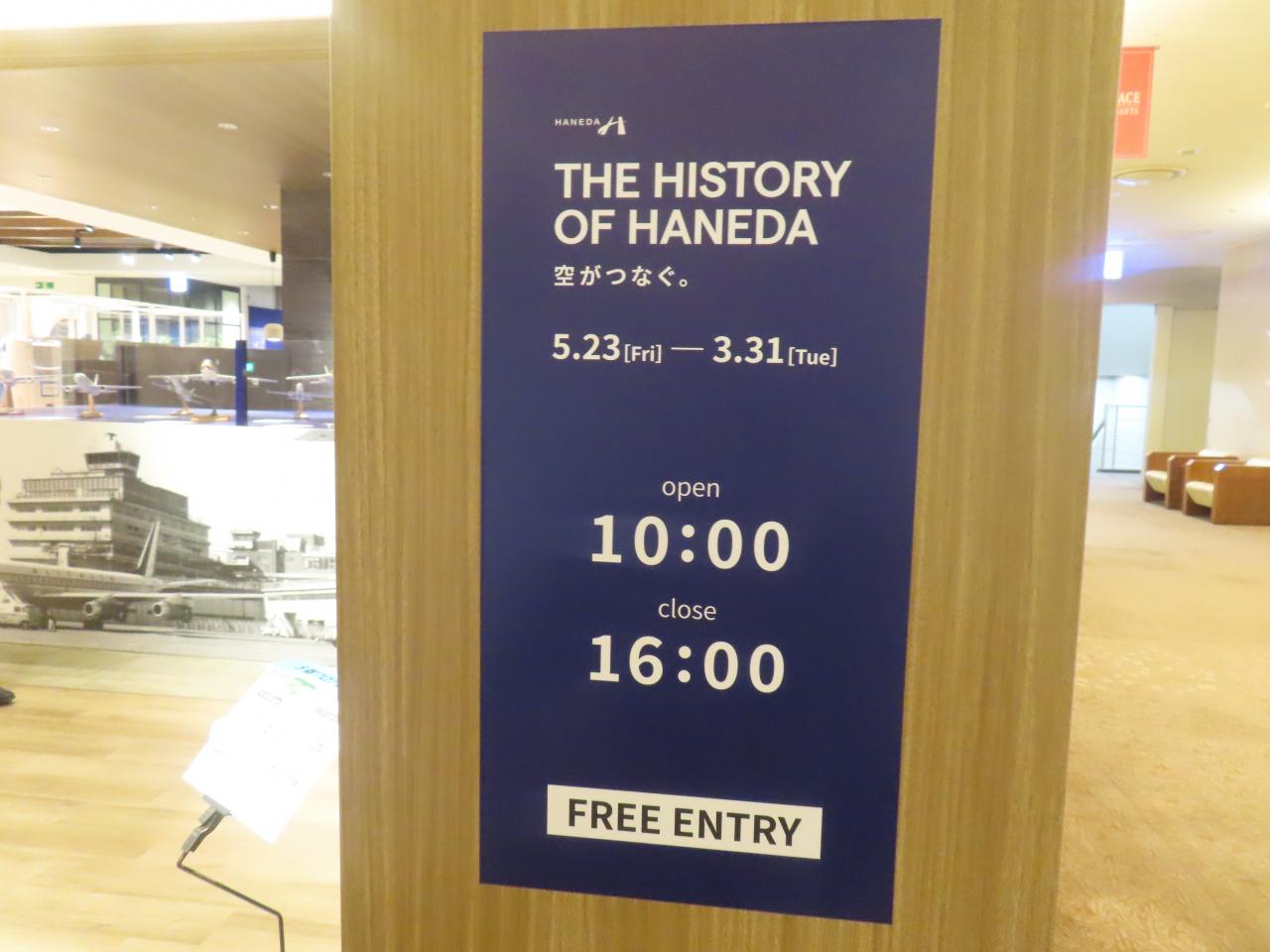 第1ターミナル5階で特別企画展「THE HISTORY OF HANEDA空がつなぐ」が開催されていました。会期は、2026年3月31日(火)までです。営業時間:10:00~16:00、入場無料です。