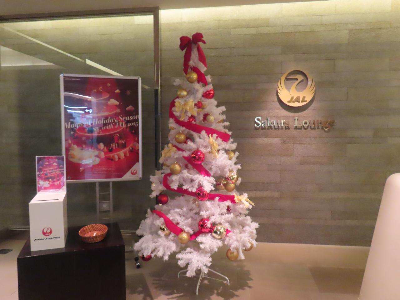 メルボルン行きは成田空港発なので、羽田空港からリムジンバスで成田空港にやって来ました。ラウンジもクリスマスモード全開です。