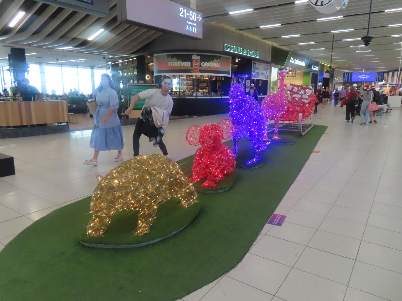 乗り換えのチェックインにかなり時間がかかって、ようやくカンタスの国内線のラウンジに到着。クリスマスなのに多くの人が移動するんですねって、世の中クリスチャンばかりではないですからね。