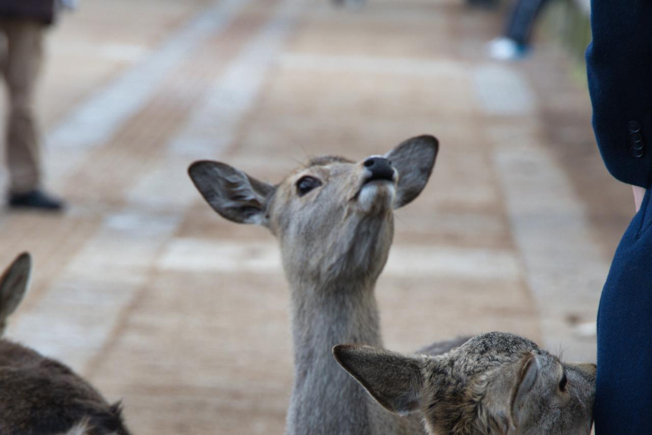 奴らは歩道に立って「鹿せんべい」をくれる人かどうかを選別します。