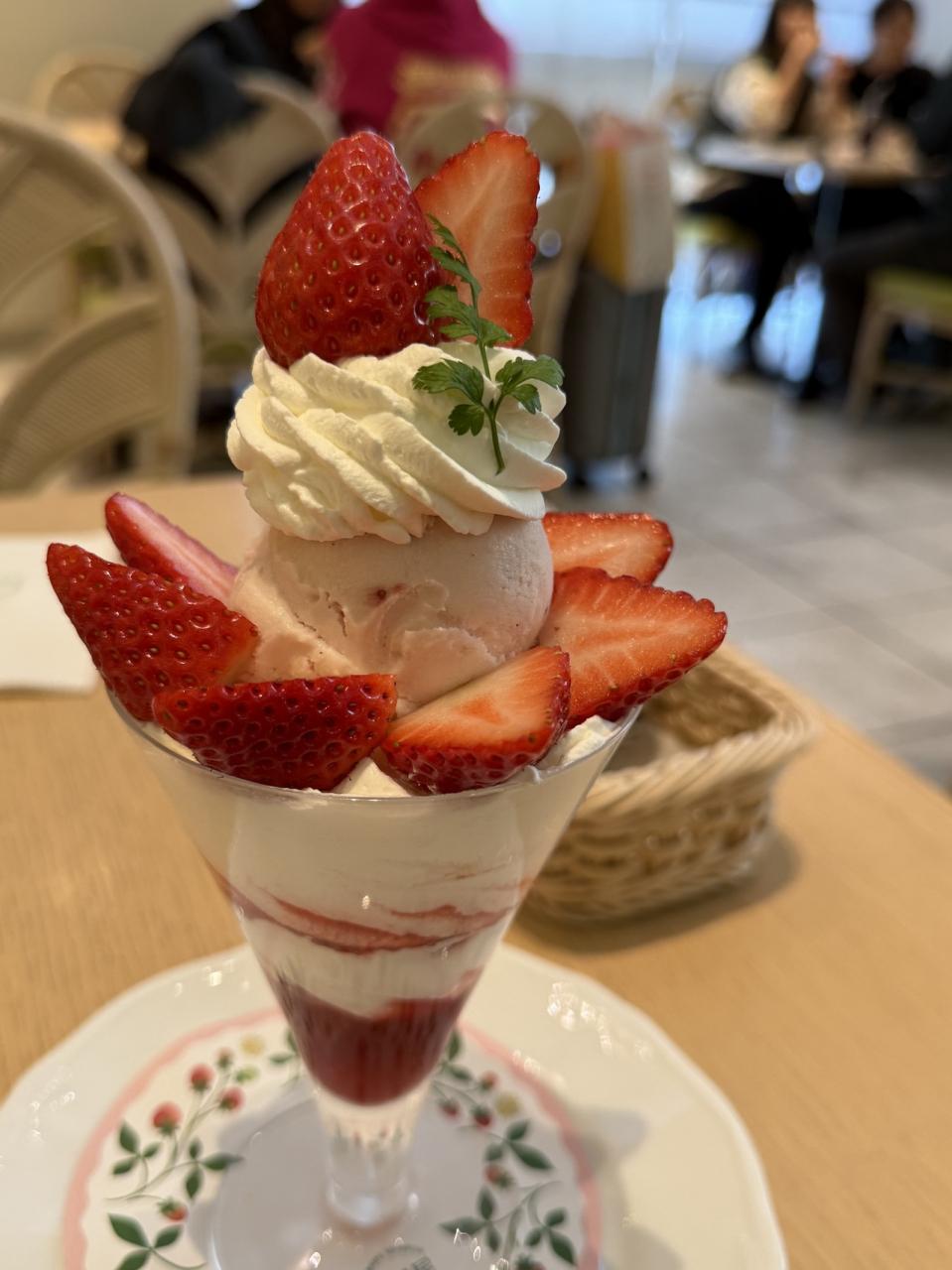 私もこの冬初めてのいちごパフェでした、いちごもさすがの美味しさ、クリームやアイスなど全部美味しくてぺろりと食べました!